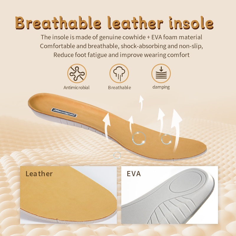 Натуральна волов’яча шкіра + устілка з пінопласту EVA — дихаюча, амортизуюча та протиковзка. Зберігає відчуття свіжості ніг милю за милєю.
