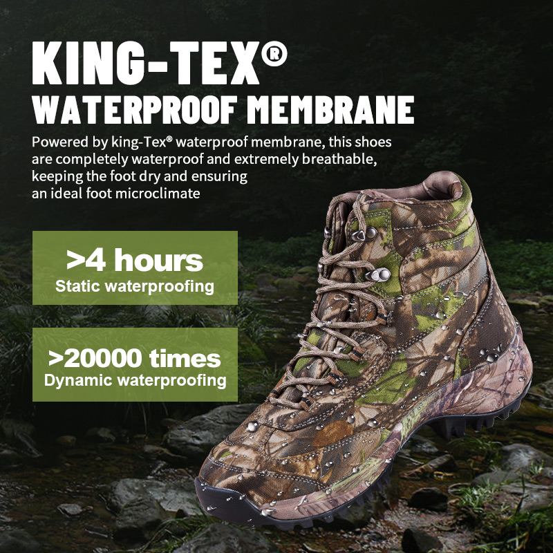 Водонепроникні мембранні мисливські черевики Kingtex збережуть ваші ноги сухими в болоті та багнюці, тоді як невидимий дизайн допоможе вам зникнути в ландшафті. Без хлюпання. Ніяких відволікань. Тільки ви та полювання. Надішліть нам запит для отримання додаткової інформації.