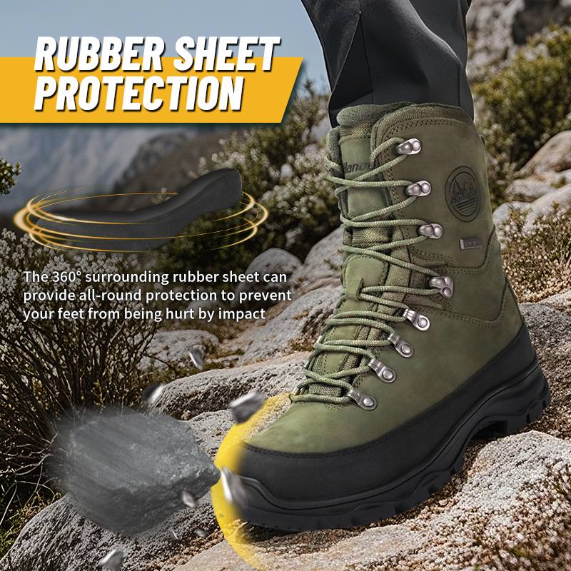 Суцільний гумовий захисний кожух оточує черевик, тож де б не траплявся слід, ваші ноги залишаються захищеними.