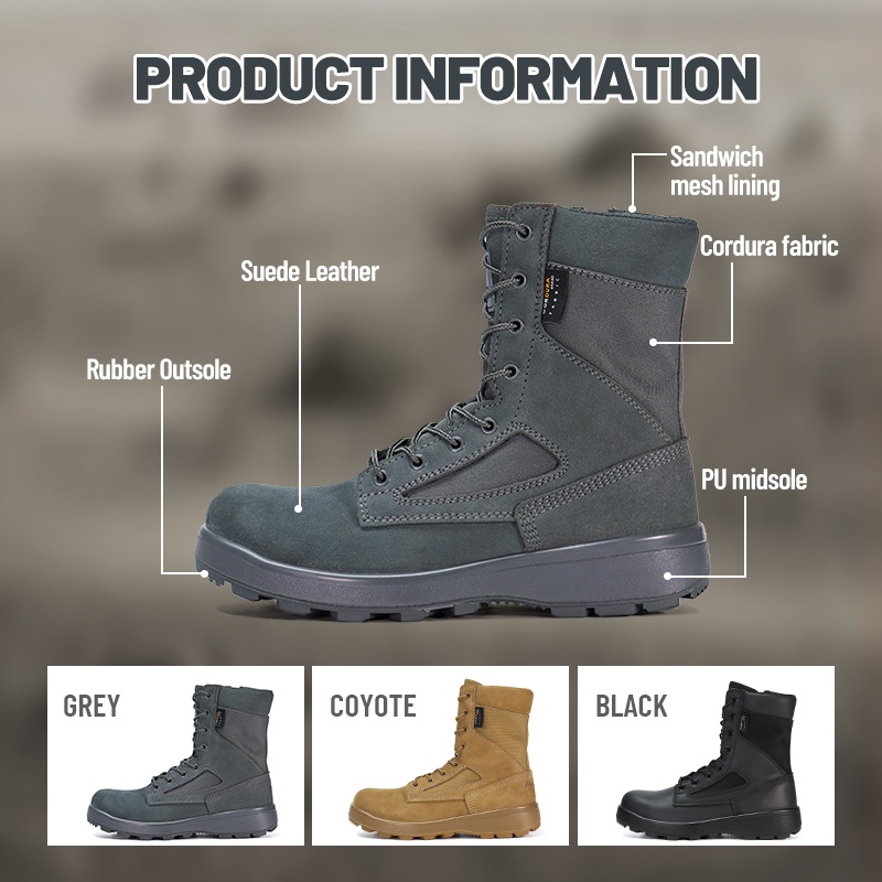 Ці вітрозахисні, піскозахисні протиковзкі тактичні черевики пустелі доступні для індивідуального налаштування кольорів, матеріалів і деталей, мінімальна вартість 800 пар ідеально підходить для співпраці з брендами та групових закупівель. І ці черевики пустелі мають такі переваги: